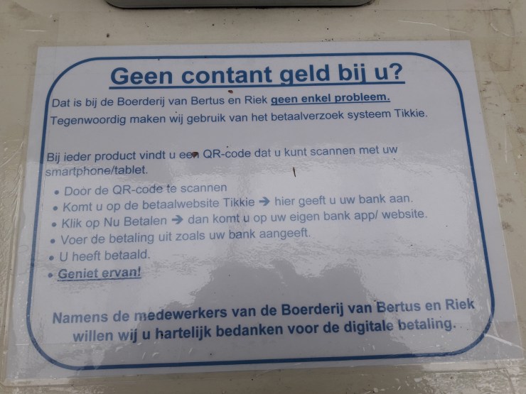 - Tot slot: genieten van u zojuist betaalde (h-)eerlijke producten van de boerderij van Bertus en Riek.
