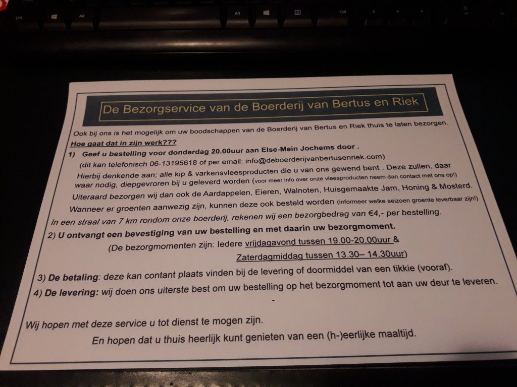 Regelmatig krijgen wij de vraag of wij ook onze (H-)eerlijke producten thuis bezorgen. Tot voorkort deden wij dat niet. Maar vanaf heden is dit een mogelijkheid bij ons.