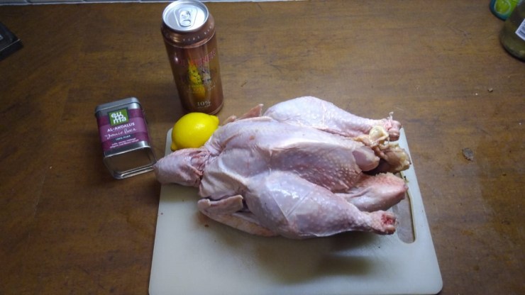 Te beginnen met de ingrediënten: Hele kip (Het liefste de logische kippen van de Boerderij van Bertus en Riek, deze zijn goed van gewicht en daar is dit recept op gebaseerd) Naast de kip heeft u nodig: Olie (om de kip mee in te masseren), Diverse smaken kruiden (in dit geval hebben we gekozen voor een kant en klare smaak aroma, maar mag ook naar wens) een halve liter bier (In de winterperiode is het bruine bier zeer smakelijk, in de voorjaar of zomer de frissere bieren!) Uien (grof gesneden) Paprika(ook grof gesneden) Knoflook & Citroen.